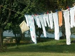 lençóis no varal e comentou com o marido: - que lençóis sujos ela está pendurando no varal!